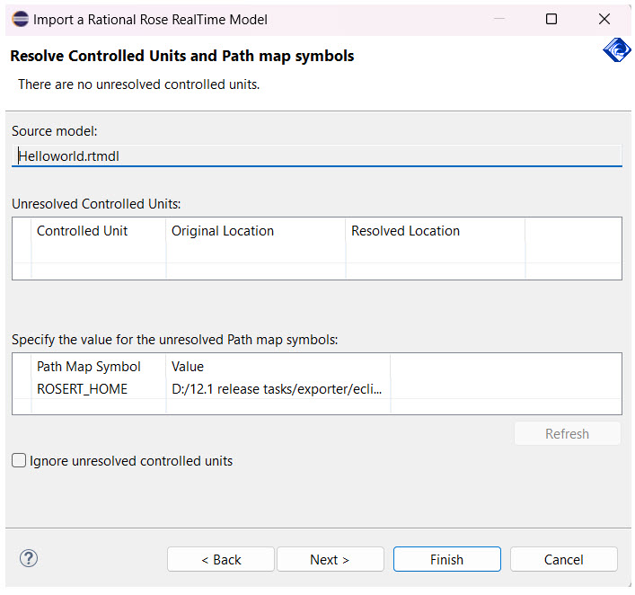 Browse to the location of the saved RoseRT model file.