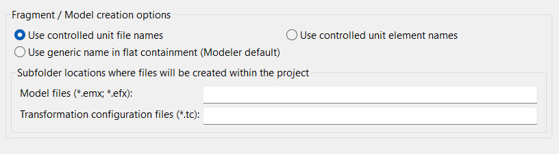 The first two radio buttons control this behavior. The default setting ("Use controlled unit file names") will continue to use the controlled unit names in RoseRT and translate them to the Model RealTime fragment file extension (.efx).
