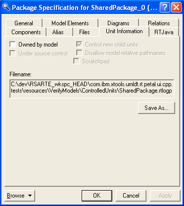"Owned by model" property is selected. | Package is imported as an owned fragment (directly analogous to a controlled unit in RoseRT). | ![]() |